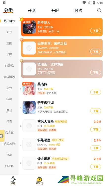 2、推荐列表,可以找到总榜、单机榜、新品榜、以及bt榜,查找游戏更方便。