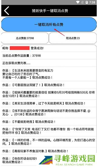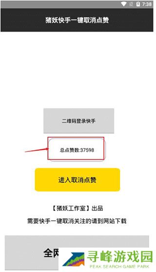 3、成功登录后可查看总点赞数,点击进入取消点赞功能;