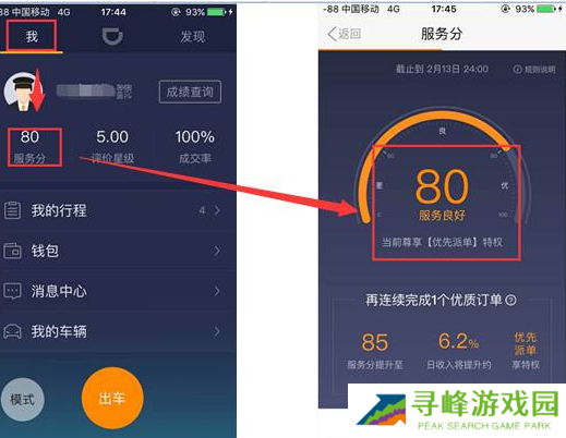 服务评分查询方式:进入司机端「我」页面,点击「服务分」查看;服务分每日更新(无历史订单的新司机初始分为80)。