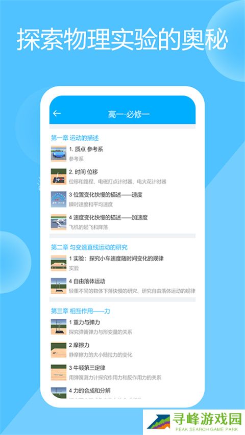 高中物理实验是为高中学生们量身打造的3D物理实验室,完美展示了课本中的物理实验场景,从力学研究到电路解析等知识点应有尽有,让书本上的物理知识不再抽象,知识点记忆也更方面。针对不同的物理实验情景,内置详细的操作演示与原理说明,根据当天物理课程老师讲述的知识亲手完成物理实验,从而轻松理解物理实验的过程和原理,也能帮助学生培养起良好的科学思维。