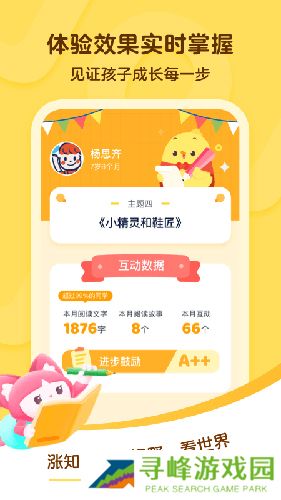 1、故事以动画的形式展示给孩子,上千次交互体验,唤醒孩子持续阅读的动力。