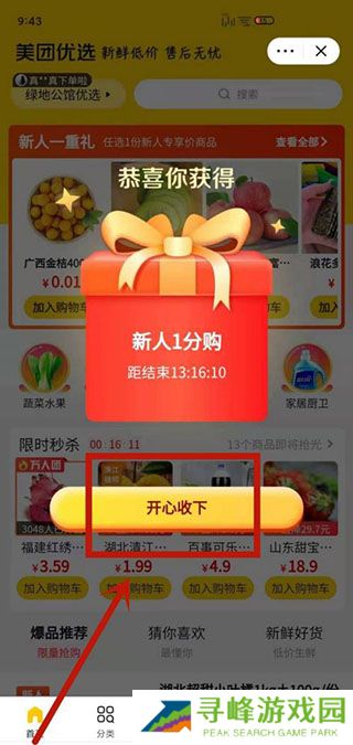 1、首先从正规渠道下载并安装美团优选app,打开后可领取新人专属礼包