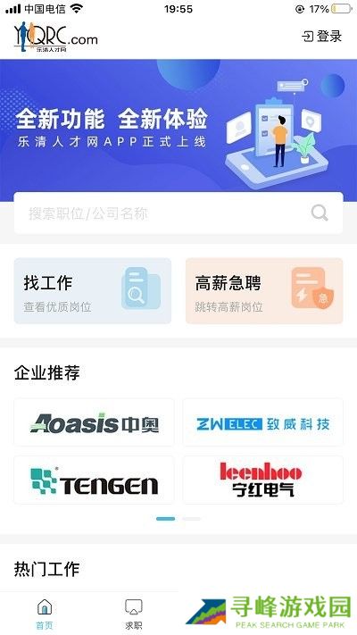 1、打开乐清人才网app,如果想要找工作的话,可以直接点击找工作。