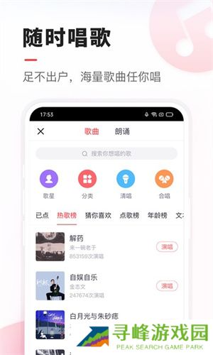 2、软件拥有海量的歌曲,可以通过搜索歌曲名、歌手的方式,帮歌迷找到想唱的歌。