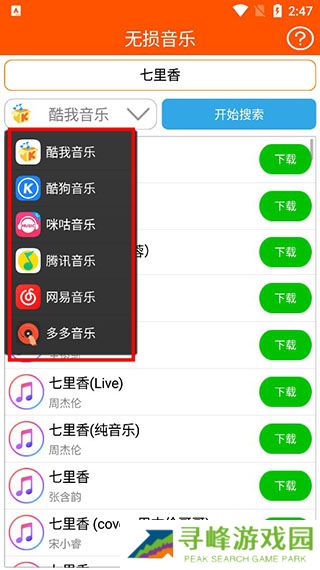 2、在搜索过程中可自由切换不同平台,如酷我音乐、酷狗音乐、咪咕音乐等,方便对比查找;