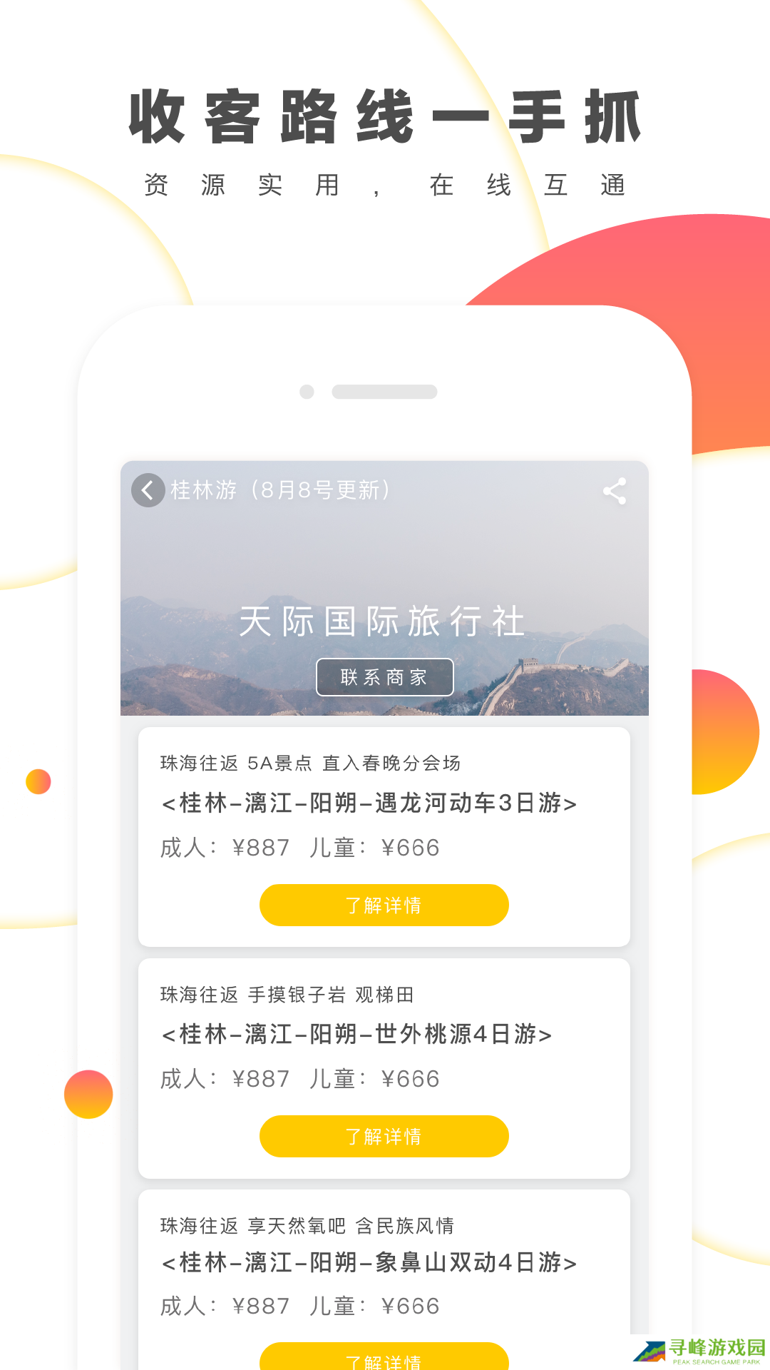 2、直接输入景区名称或者旅行团名称,即可显示各类与之相关的信息。
