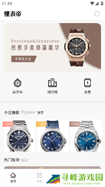 1、打开懂表帝app,在首页中用户可以查看原子钟、手表的排行榜、选表、以及查看关于手表的各种小视频