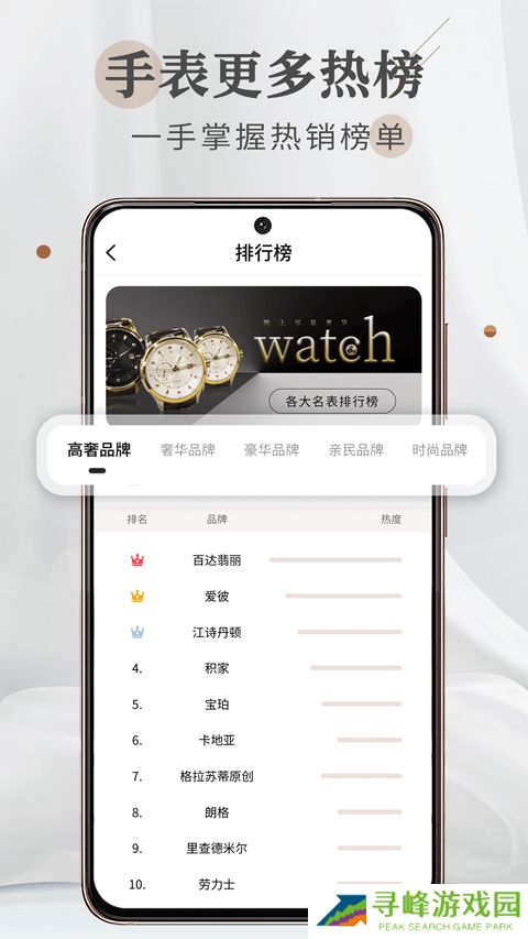 3、手表各品牌销量排行榜,了解现阶段的手表热度,知道登进排行榜的手表名单。