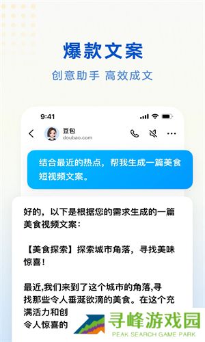 4、生成文本:豆包可以生成文本,例如故事、诗歌、文章等。