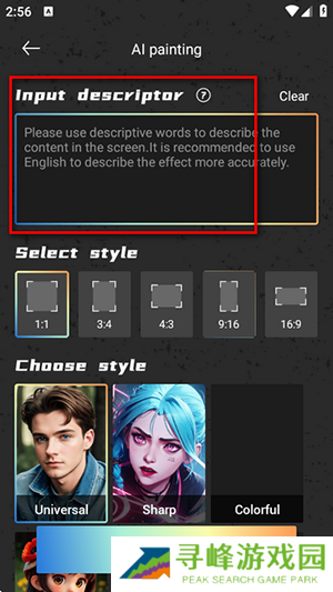 2、输入关键词并选择喜欢的艺术风格和表现形式。