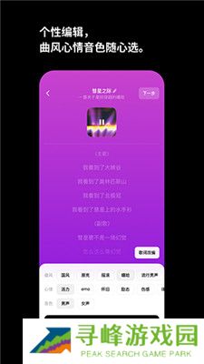强大的自定义选项,可灵活挑选曲风、情感氛围和音色,打造专属的个性化音乐作品。