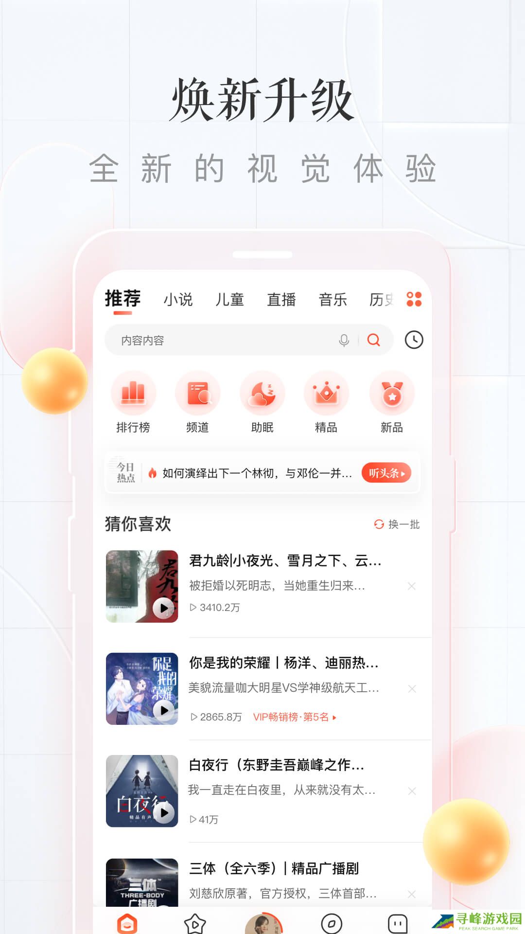 喜马拉雅安装包是国内最大的有声FM电台,数亿人们的最佳听书选择,国内上千位大咖云集,听有声小说、相声评书、新闻资讯,想听啥这里都有。一个人开车、在家无聊时,不妨听听个性电台,成千上万优质的有声小说等待听众们探寻,让你的心被温暖包裹。设置趣配音版块,开启录音后朗读手机屏幕中的文字内容,用声音实现演艺梦,人人都可以成为有声博主。