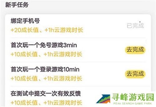 4、新手任务:新用户还有专属的新手任务可以完成,完成后共计可以获得3小时游戏时长。
