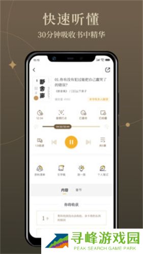 2、提供听书服务,部分书籍配备优秀朗读者配音的情感饱满的有声资源。