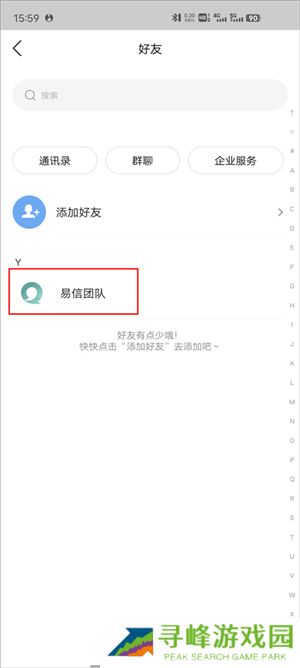 4、在通讯录页面搜索联系人,开启一对一私聊或多人群聊