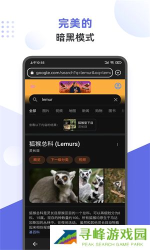 狐猴浏览器是一款拥有无限扩展潜力的安卓手机浏览器,不论是谷歌Chrome,Edge又或者是Tampermonkey油猴统统收录其中,可供用户按照需求自由安装插件,值得说道的事狐猴浏览器基于Chromium内核,内置无痕浏览模式,可以有效保护每一位用户的隐私和安全,自带完美的暗黑模式,可以让网页浏览阅读更加畅快。