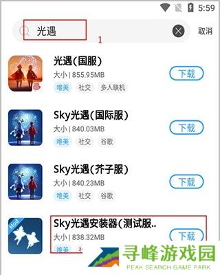 2、在上面搜索“光遇”,下面就会出现各种渠道服,用户就可以下载测试服啦;