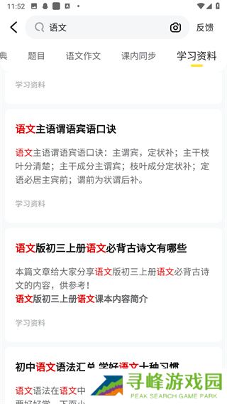 3、在搜索结果中还可以筛选语文作文、学习资料、课内同步等。