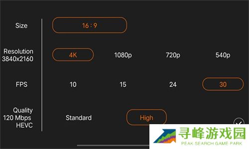 3、进入后有缩放屏幕、设置、4k30fps、录音和播放。