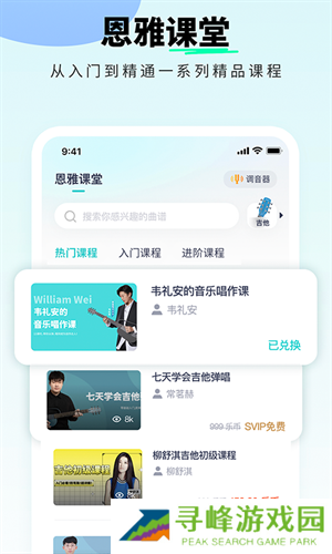2、为音乐小白提供了海量的乐器学习课程, 包含从入门到精通的一系列优质课程。