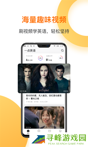 一点英语是一款能够帮助中小学学生看视频学习英语的软件,软件通过视频情景的方式学习英语,让学生们观看英语电影的方式,从视频中学习每个单词的拼写以及读法,还能把不认识的单词识别出来,通过整理以及系统性的学习,轻松掌握电影中陌生的单词。软件还会给学生们提供很多直播课程进行学习,通过来自国外名校专业老师的讲解,帮助学生打造一个纯正的英语英语学习华景,轻松提高词汇量、单词运用以及听说能力。