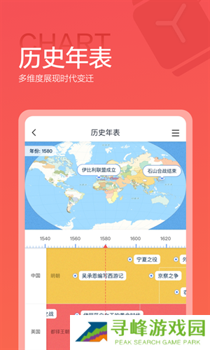 全历史是一款历史学习神器,软件给用户提供了全历史的时间轴,能够让学习者们看到从公元前至今的国内外重要的历史时间,能够通过时间、地点、人物一层层深度解析历史元素,了解每一段历史背后的故事。为每一个历史重大事件与名人设置关系图谱,使用图谱的方式更加直观的了解每个事件人物背后的关系,通过清晰的脉络展现出来,帮助学习者们加深历史知识的印象。