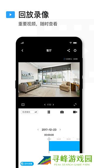 支持监控录像回放,监控录制的视频文件自动保存在手机云端存储中,随时打开回放。