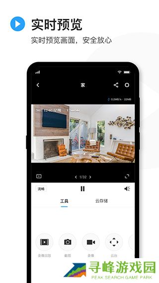 实现监控画面,预览健康画面、录像、截图、语音对讲、云台控制及录像回放等功能。