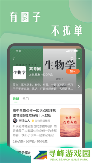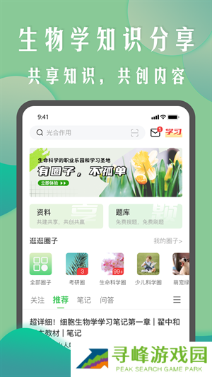 3、设置不同分类的圈子,加入到适合自己的学习圈子,与全网学友们线上探讨生物知识。