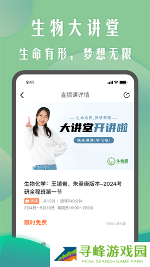 生物圈是一款以生物知识为主的线上学习软件,提供日常生活中可以使用的医学知识,由金牌教师通过视频讲解帮助你了解这些知识,在学习中遇到同类问题,就能够有了应对的解题思路。软件还给学生们提供了高中生物课本相关的内容,选择与自己当前所学的教材进行匹配,会有专业的老师通过直播课给学生讲解每一节课的重点内容,让学生掌握生物知识点,帮助学生备战生物期末考,轻松获得高分。