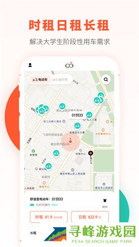 2、提供单人车,双人车等多种出行方式,以不同的用车时段选择租赁。