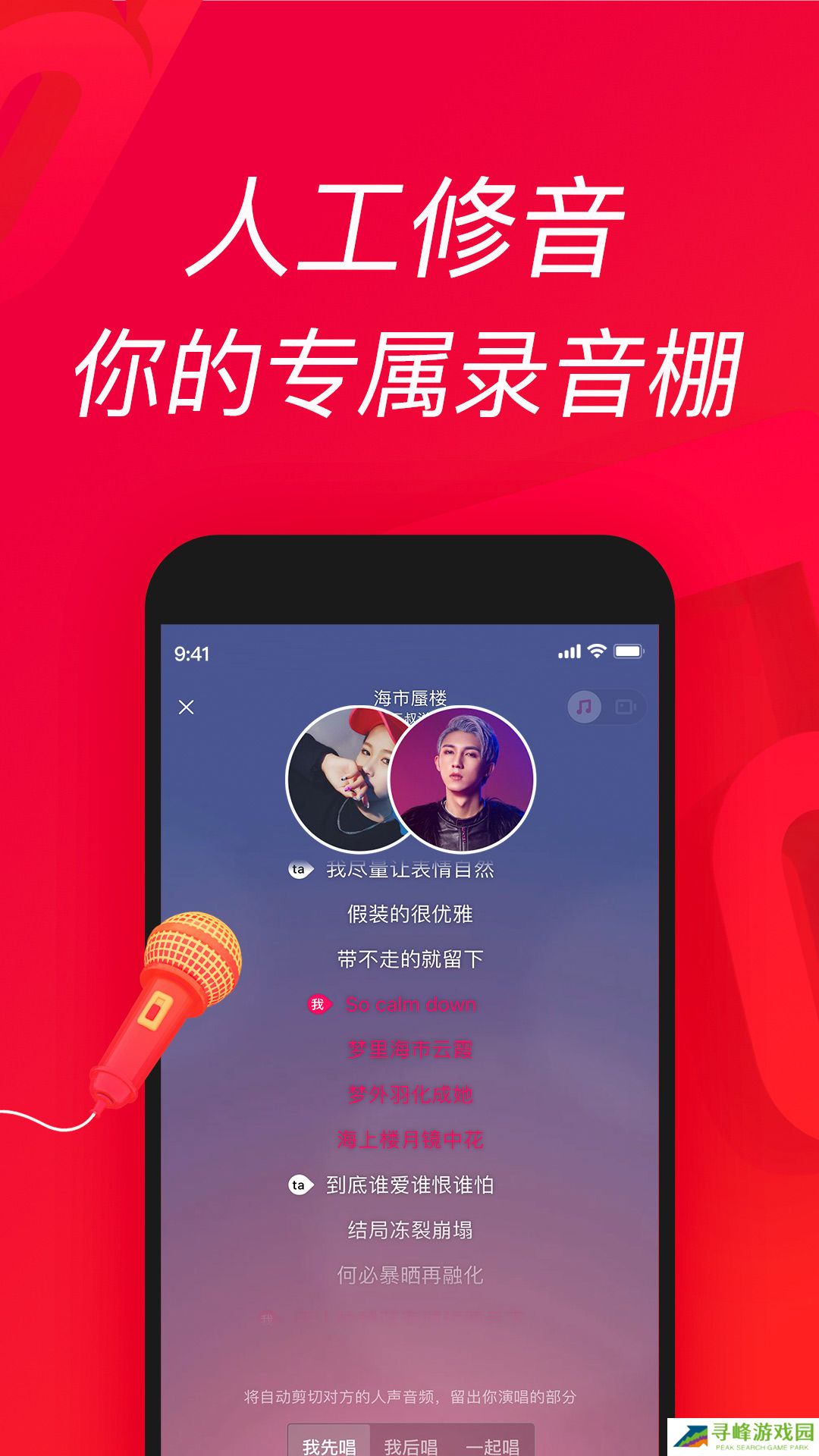 1、海量歌曲都能唱,内置一键修音功能,给歌手么录音棚般极致K歌享受。