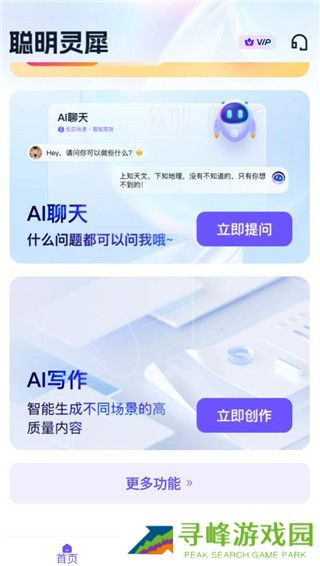 1、启动应用后进入主界面,包含AI对话与AI写作模块,可随时向AI提问或请求生成特定场景内容