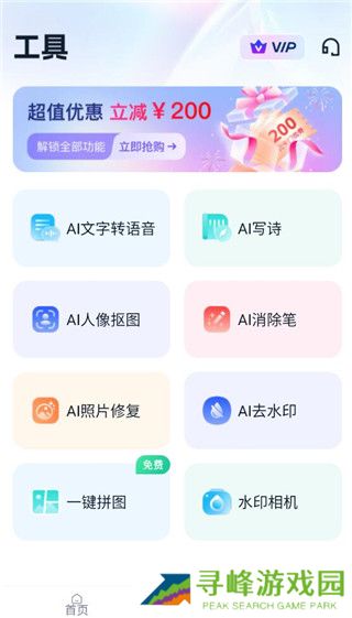 2、在功能区集合了多项实用工具,包括人像抠图、消除笔、照片修复、去水印等功能