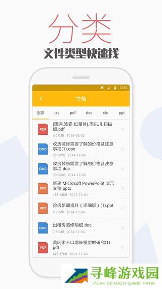 2、照片、歌曲、视频文件、文本文档、安装文件、压缩文件、音频文件一键管理;