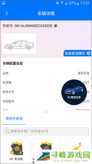 2、车型查询可以匹配到同款车所有配置的配件数据,直接查询零件的详细配置说明。