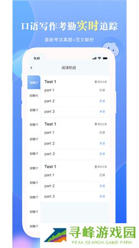 1、提供正版听力、阅读真题,口语、写作考场真题,随时在线开练习。