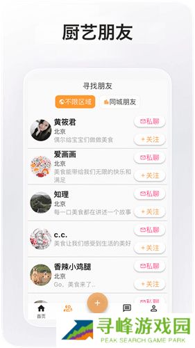 3、与爱好美食的朋友相互沟通交流,也可以找到同城爱好美食的朋友们。