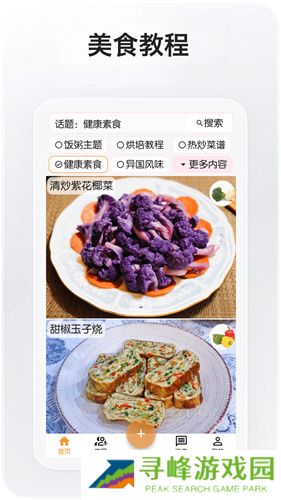 1、支持按标签、食材、话题和关键字搜索相关的美食菜品与制作教程。