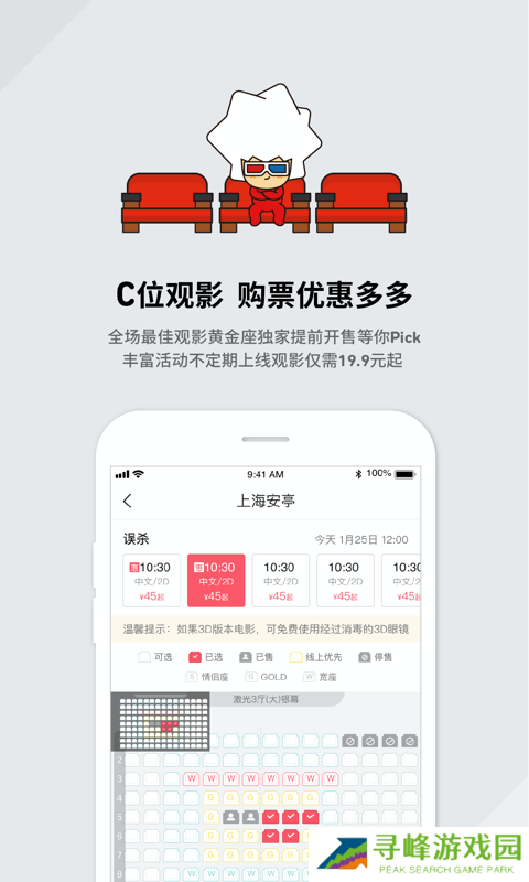 1、专属购票特价,一键Pick优惠折扣,优选黄金座位,一键挑选最佳观影位。