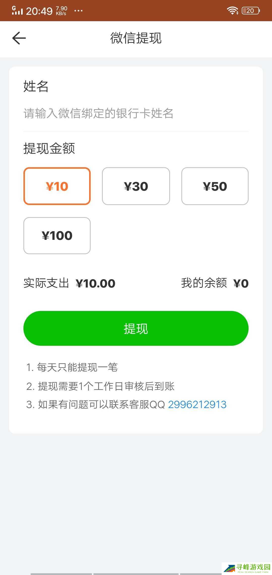 3、达到10元门槛即可提现至微信钱包,每人每天限提一次;