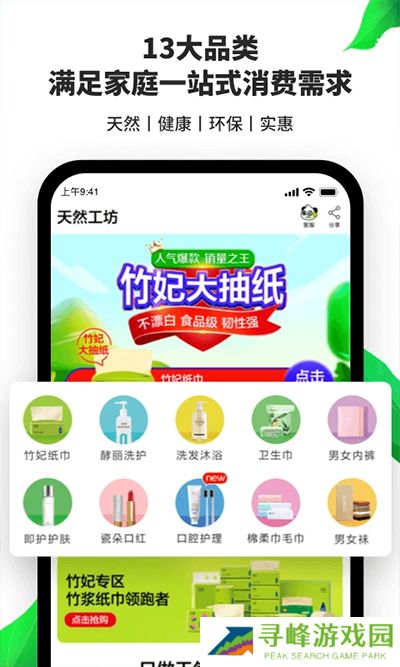 天然工坊是一款主打天然产品的手机购物软件,每天都能给消费者们带来价格低廉、质量可靠的健康产品,卫生纸、护肤品等等一应俱全,并且经过*安全监测标准,无公害无化学添加,可以放心使用。