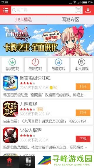 1、打开虫虫助手后,在首页中部可浏览已破解游戏,轻松下载你想要的和谐版本。