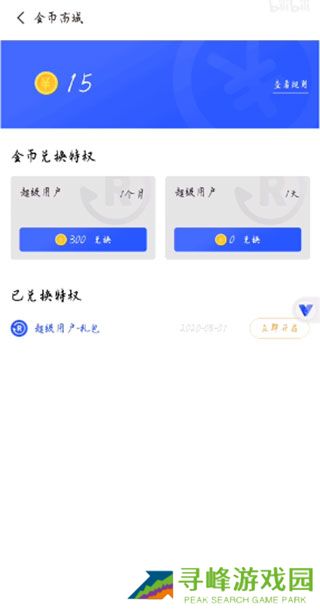 2、进入金币兑换特权界面,选择超级用户零金币试用选项,并点击确认兑换