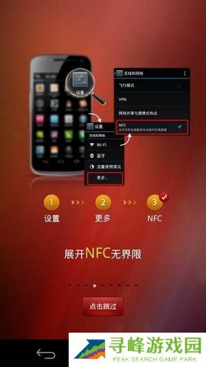 开启手机的NFC功能。打开手机的“设置”功能,点击“更多”进入下级菜单,找到NFC选项并勾选,即可开启NFC功能。