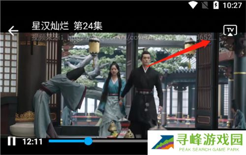 2、在视频播放界面,点击右上角【TV】按钮,在选项页面中点击【投屏】按钮。